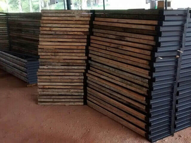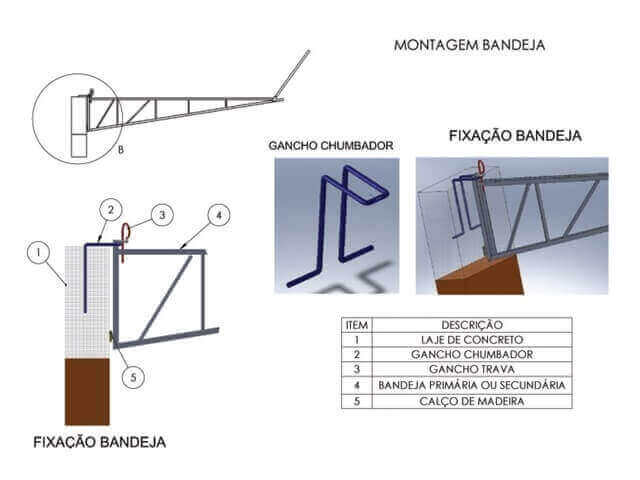 Bandeja de Proteção Coletiva, sendo Bandeja de Proteção Primária e Bandeja de Proteção Secundária, fabricadas para serem usadas em Obras da Construção Civil como prédios residenciais e comerciais. Segundo a norma NR 18.